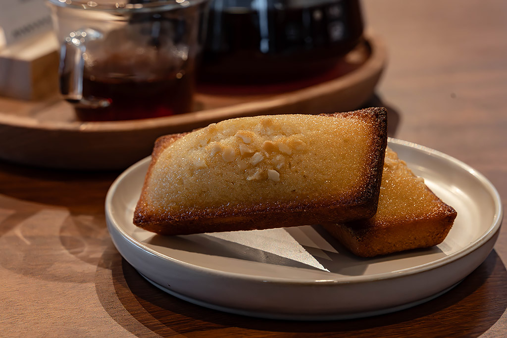 堅果粉與焦化奶油的組合,有著杏仁與榛果的香氣,口感扎實濕潤,是熱門配咖啡的甜點選擇。